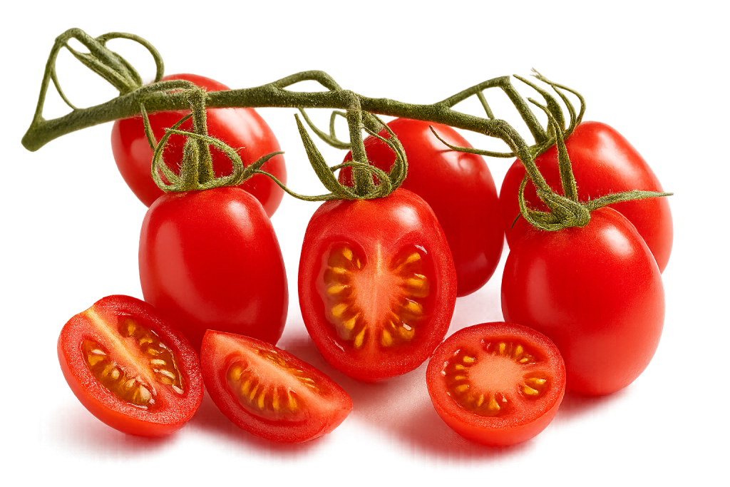 Pomodorini di piccole dimensioni che crescono a grappoli di 8-12 frutti del peso di 30-50 grammi ciascuno. Sono pomodori ottimi per preparare salse.